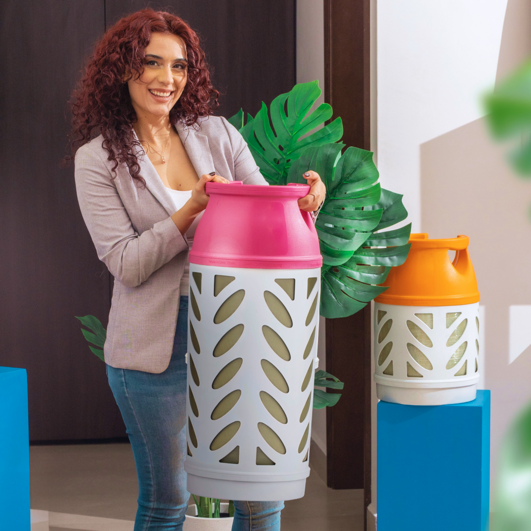Su diseño translúcido te permitirá saber cuánto gas tienes y sus materiales son tan ligeros que cualquier miembro de la familia podrá moverlo.